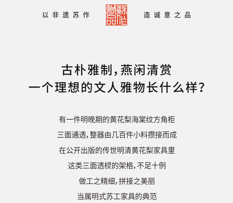 苏作家具无论是选材、工艺、造型和韵味,均体现了浓郁的明代文人气息。