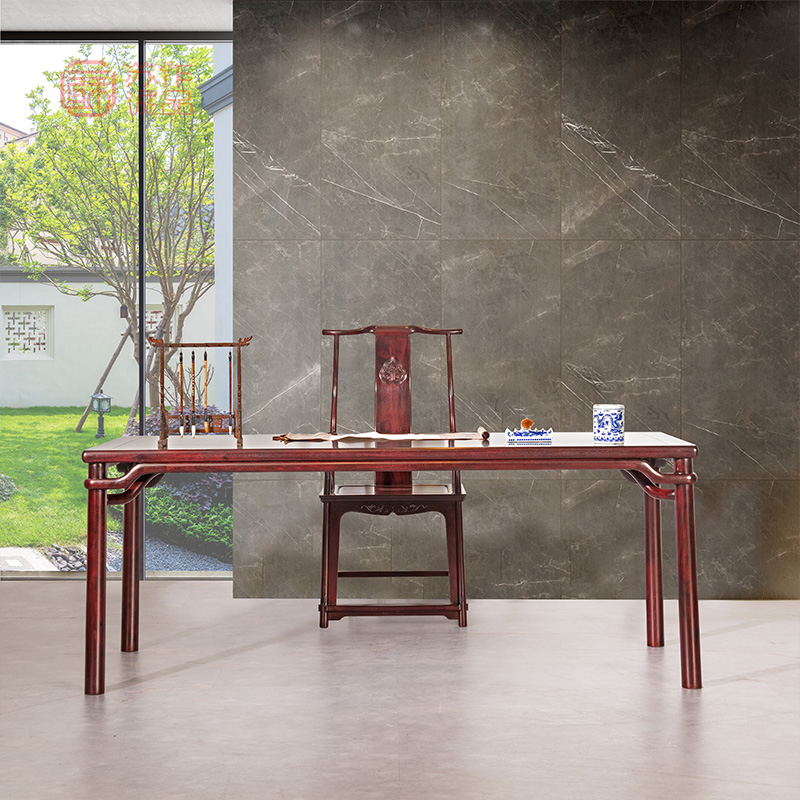 明式家具中的典范之器,赞比亚血檀圆包圆霸王枨书桌