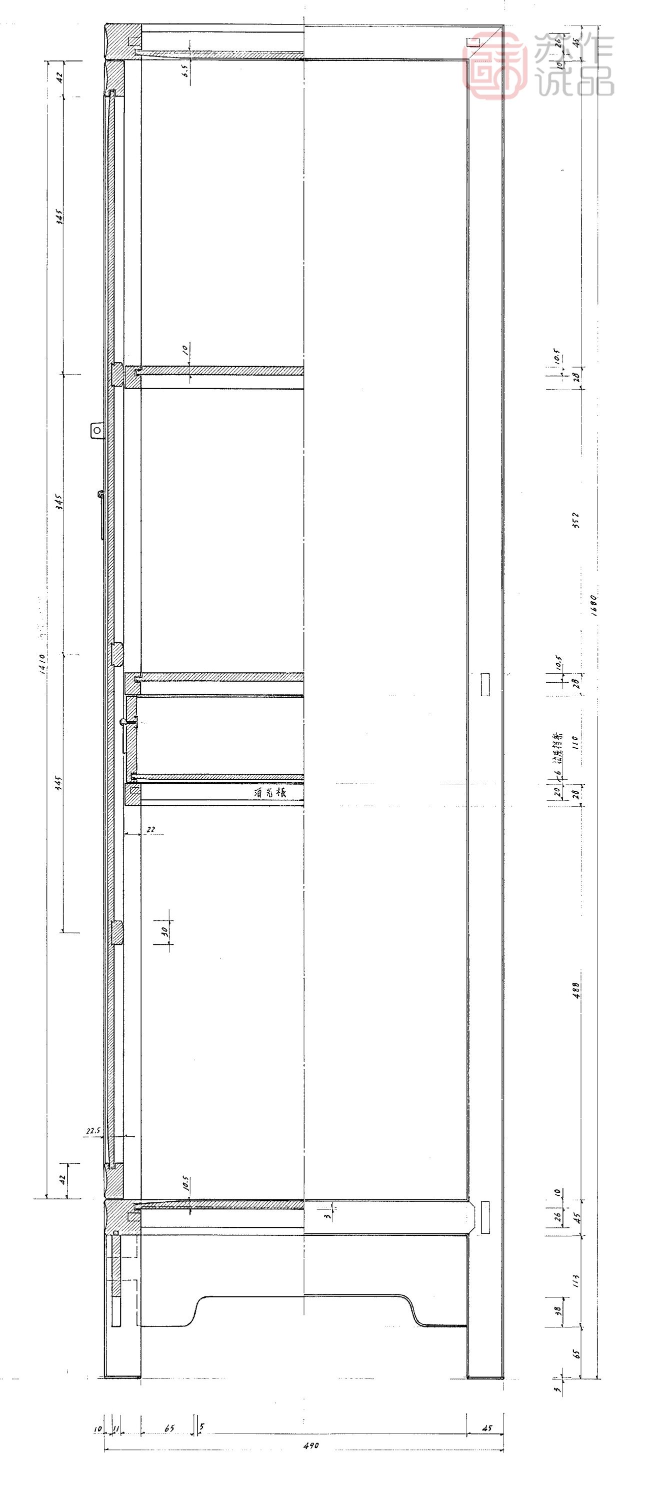 《明式方角柜非遗器型手绘稿,1:1比例器型图》