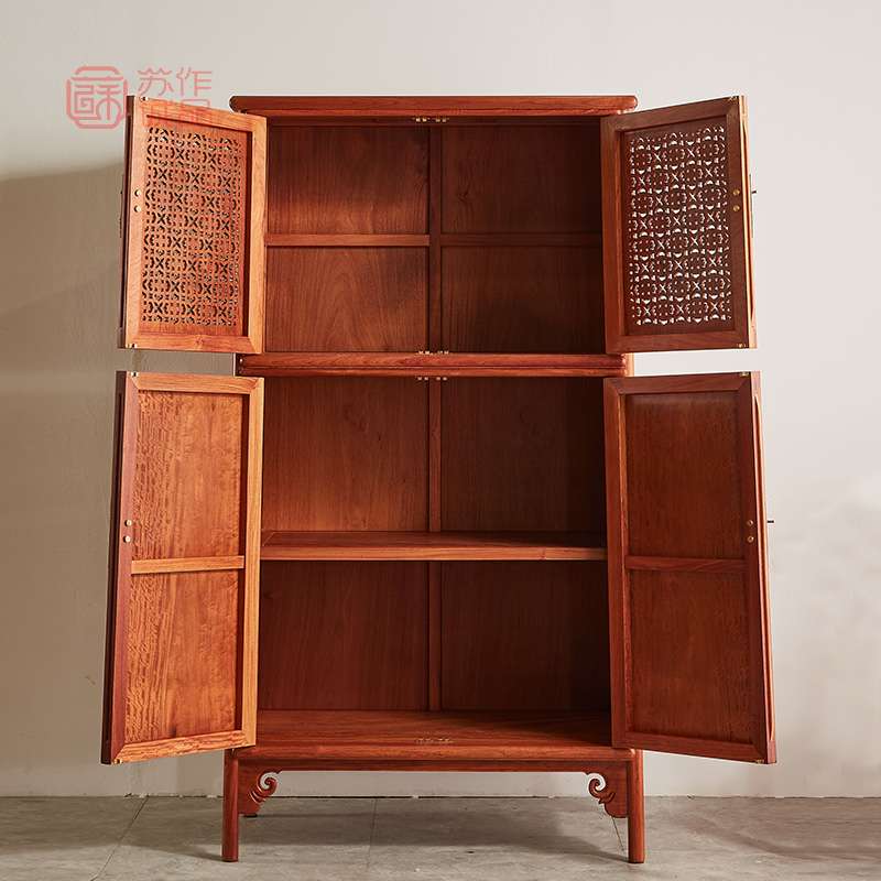 大器免成让世界看见明式之美,缅甸花梨四簇云纹透格圆角柜