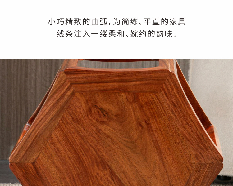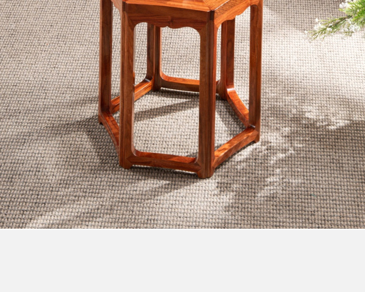 源自于官器血统的造型,缅甸花梨六角葵矮凳