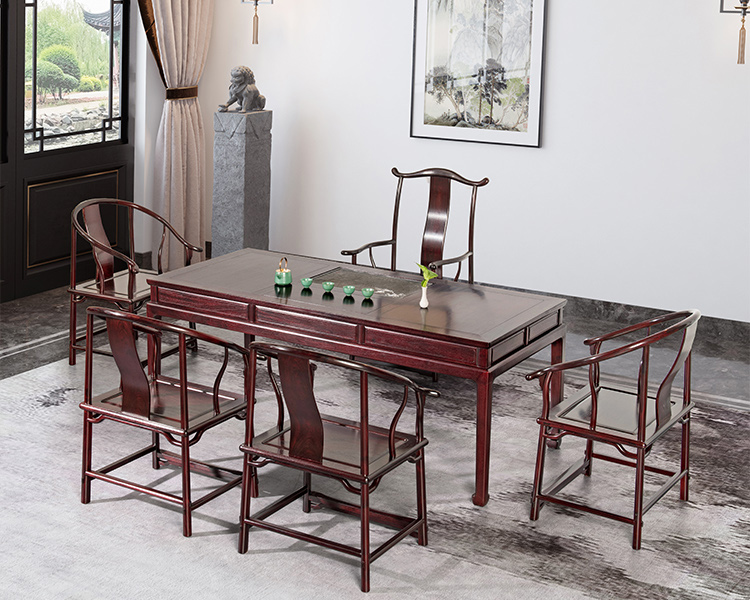 本是文房之书桌 兼任茶室之茶桌,赞比亚血檀明式高束腰三屉茶桌